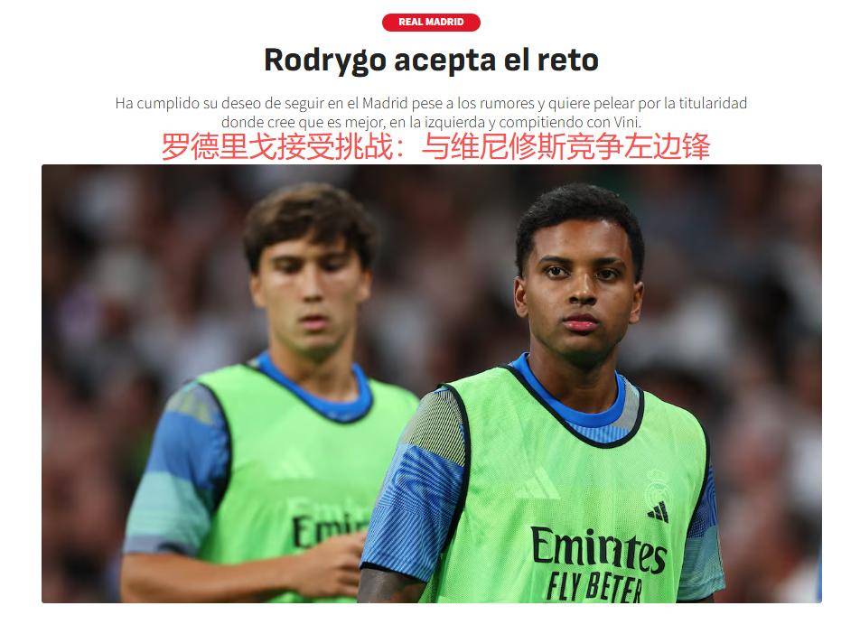 9月4日,《阿斯报》独家披露了阿隆索的解决方案:这位以战术智慧著称的少帅决定采用"竞争上岗"的激励机制,让两位巴西国脚在良性竞争中相互促进。据内部消息透露,阿隆索在季前备战期间就多次与罗德里戈进行深度交流,不仅详细分析了球员的技术特点,更着重强调了竞争意识对个人成长的重要性。罗德里戈对此展现出积极态度,明确表示愿意接受与同胞的直接竞争。